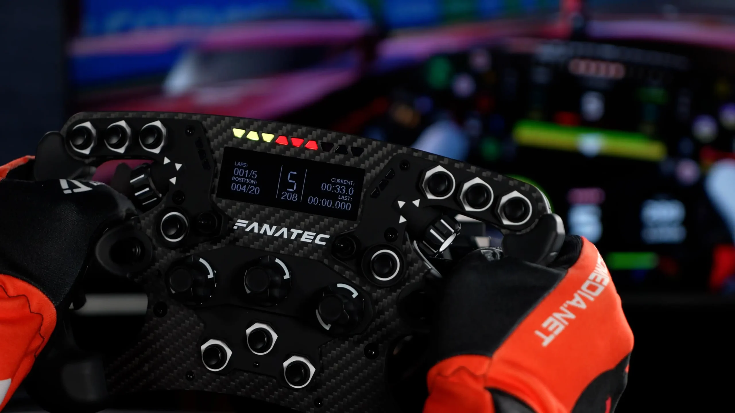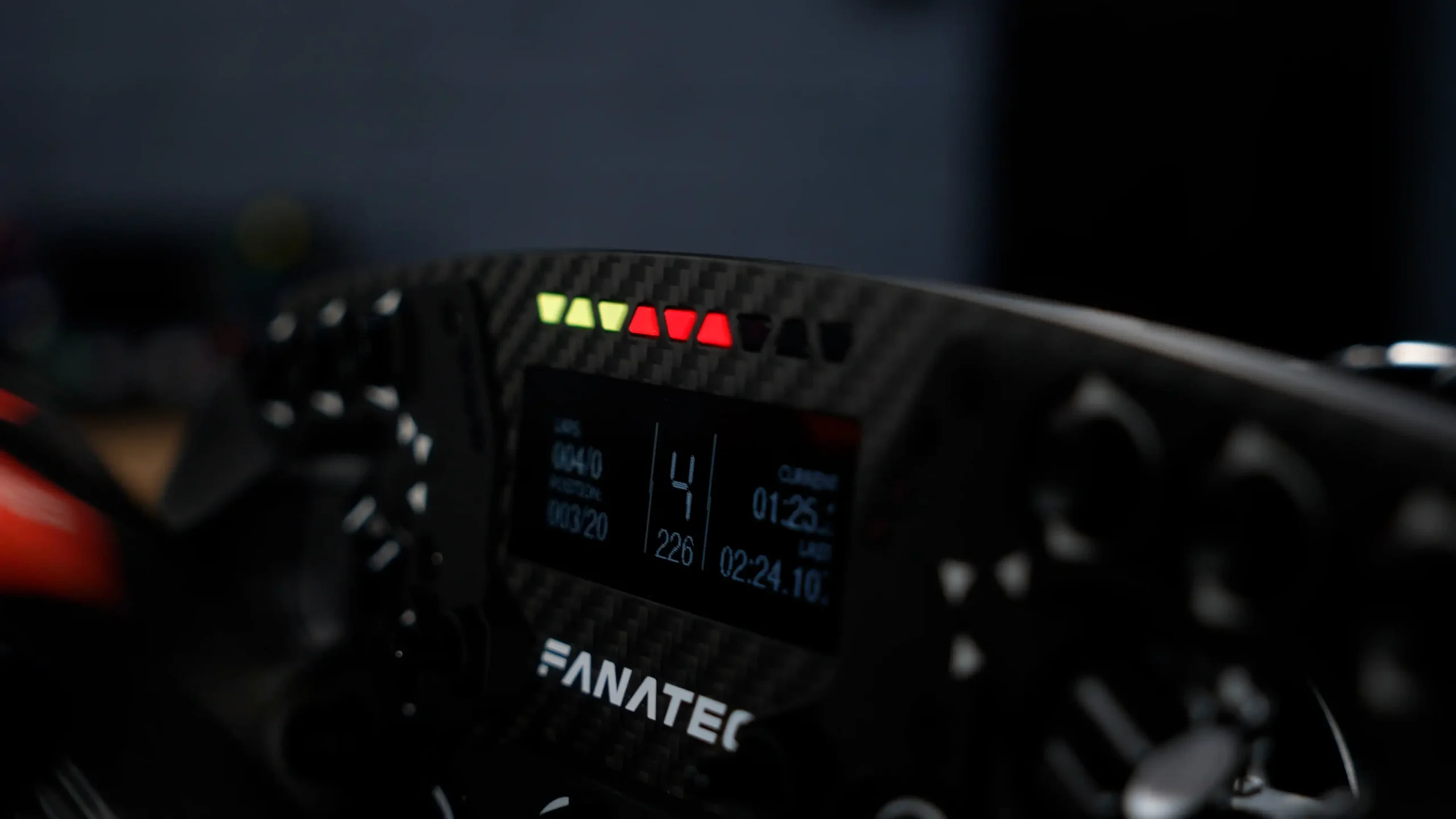 Fanatec has also retained the RevLED strip across the top of the wheel, along with the integrated FlagLEDs, which continue to be one of the more useful parts of the overall package. They add a lot to the at-a-glance usability of the wheel, particularly when combined with the larger display and Fanatec’s broader telemetry integration.