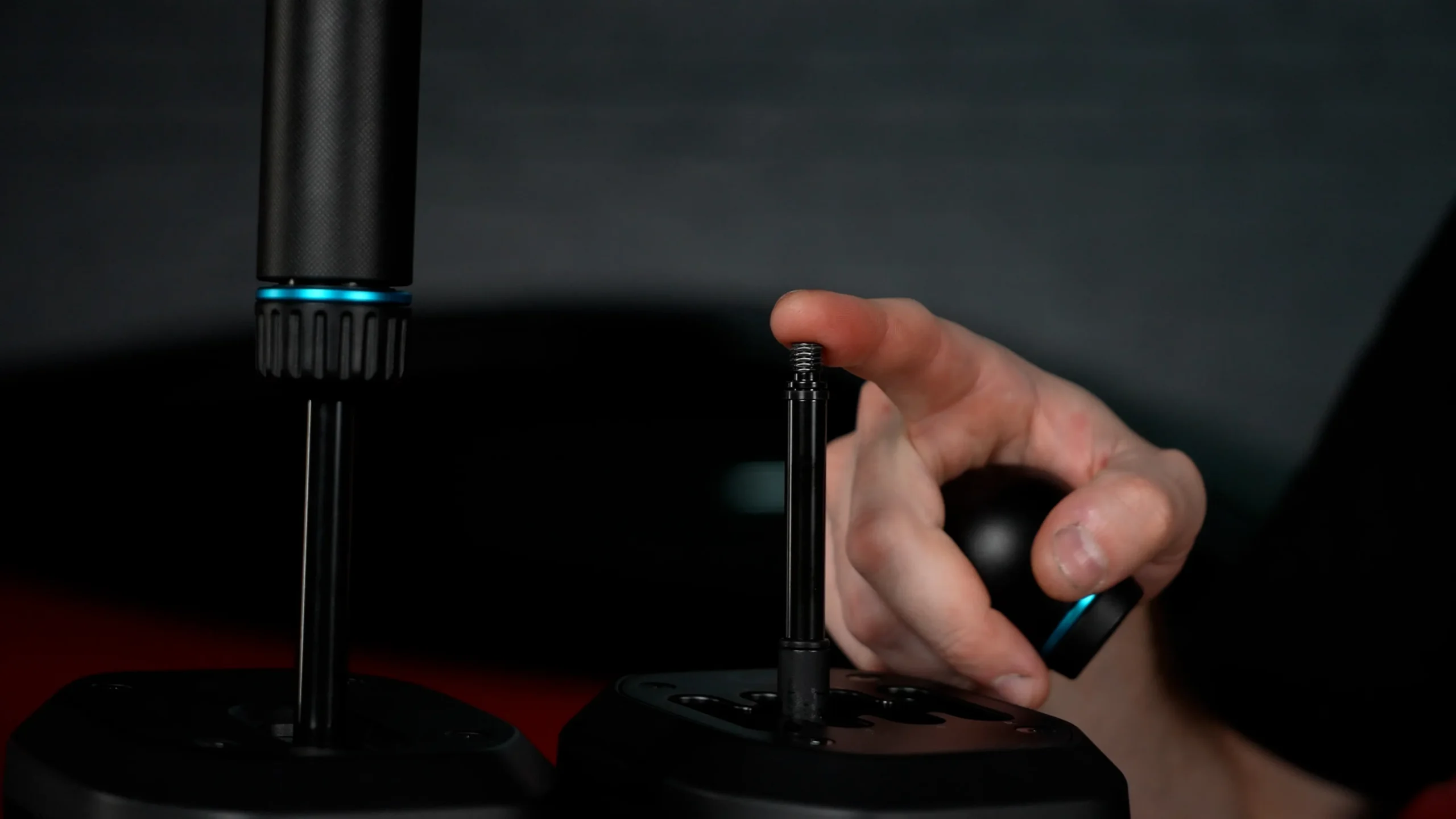 It uses the same general mounting ecosystem as Logitech’s handbrake and sequential unit, so you get desk clamp and hard-mount options, along with the ability to stack the units if needed. The shift knob uses a standard M8 thread, so it can be swapped out, and the included knob itself is a solid piece with a nice amount of weight to it.