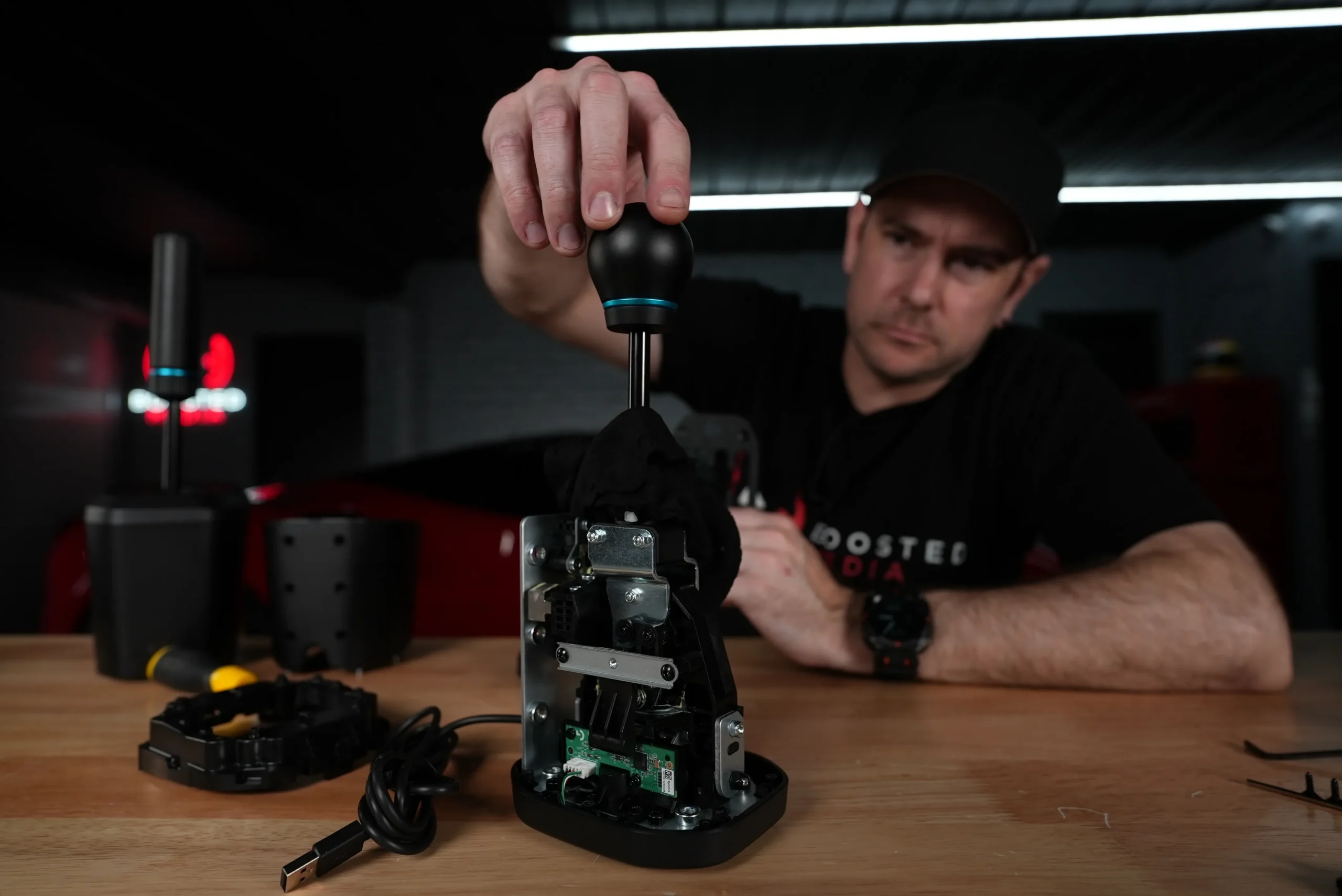 Compared to the old Driving Force Shifter, this feels like a much more substantial product. From what we saw in the teardown, Logitech has used steel where it needs to be steel, with solid reinforcement and sturdy mounting points throughout, while relying on plastic where it can get away with it to keep weight and cost under control. The gated shifter plate is aluminium, and the included shift knob is a weighty machined aluminium piece with a standard threaded stem. The housing itself is still largely plastic, though, and that does shape the overall feel of the product.